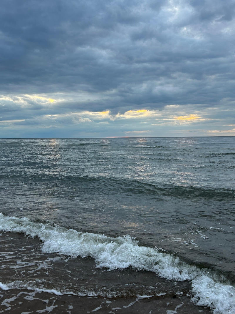 Der Sonnenuntergang in dem kleinen Ferienort Niechorze war uns nicht vergönnt, die Wolken verdeckten das allabendliche Schauspiel. Dafür sind wir noch eine Strecke am fast menschenleeren sandigen Strand gelaufen.
