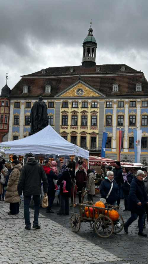 25. und 26.10.2025 ~~~ Kennst du die Coburger Bratwürste? 31 cm lang, auf Kiefernzapfen gebrutzelt...ziemlich dunkel, wenn sie, in ein Brötchen geklemmt, dir der Brutzler in die Hand drückt... wenn du sie noch nicht kennst, empfehle ich den Besuch eines Samstag-Marktes in der Stadt. Das lohnt nicht nur wegen der Bratwurst, sondern vor allem wegen der Vielfalt und Lebendigkeit des Marktes. Da macht das Einkaufen fürs Wochenende Spaß!